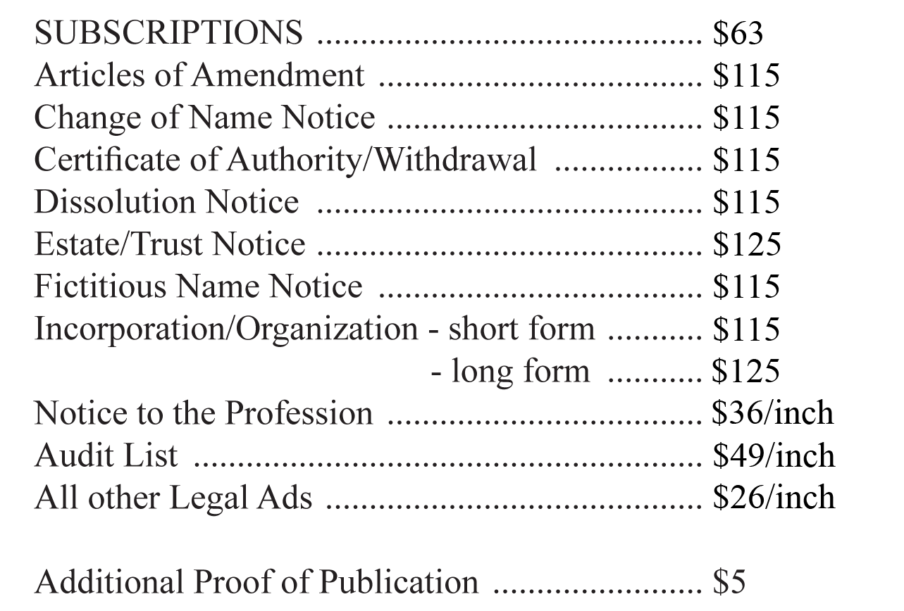 All Non-ECBA Members (attorneys and non-attorneys) must pay advertising fees in advance of publication.